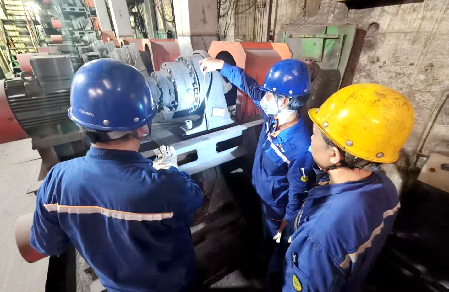 “這種減速機(jī)是進(jìn)口設(shè)備,單臺(tái)采購成本就要近10萬元,要是直接多臺(tái)更換,生產(chǎn)成本一下子就上去了,現(xiàn)在公司經(jīng)營困難,咱們必須想辦法把成本降下來!”維檢車間左主任在設(shè)備故障分析會(huì)上說。維檢車間迅速成立攻關(guān)小組,否決“簡單換新”方案,制定“分批下線維修+國產(chǎn)替代”策略。面對(duì)無圖紙、無售后的進(jìn)口設(shè)備,團(tuán)隊(duì)“盲拆”攻堅(jiān):老員工精準(zhǔn)指導(dǎo)拆解,青年員工全程記錄零件位置、編號(hào);針對(duì)軸承卡滯難題,采用潤滑油浸潤+專用工具緩拆,3小時(shí)完整解體無損傷……檢測發(fā)現(xiàn)核心軸承磨損、密封件老化后,團(tuán)隊(duì)跳出“進(jìn)口依賴”,比對(duì)國產(chǎn)配件參數(shù),經(jīng)庫房領(lǐng)用、校驗(yàn)測試,成功替代裝配。