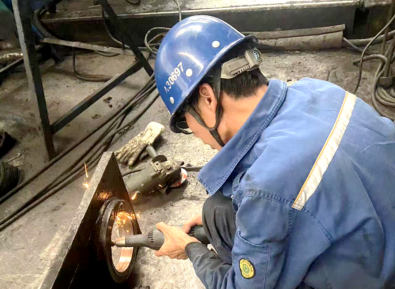 390軋機壓下機構故障,無法正常收放料,影響軋鋼質量與效率。棒一準備班骨干排查發現,是導向套生銹抱死、缺潤滑油,收料裝置磨損滑牙所致。他們秉持“能修不報廢、能用不換新”的原則,全面拆卸裝置,再用打磨機對齒箱及蓋板上的導向套進行精細打磨至間隙0.3mm的標準,補充潤滑油保養;針對收料裝置的磨損滑牙問題,采用堆焊工藝修復后再進行打磨處理,確保收放料功能恢復正常。修復后壓下機構裝置恢復正常轉動,保障了軋機能夠穩定調節壓放輥縫,有效提升了軋鋼質量與生產效率,避免了因無法正常壓放輥縫可能引發的堆鋼事故,直接省下6.09萬元的備件費用。