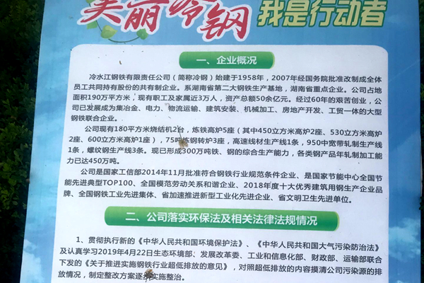 6月5日,湖南博長控股集團有限公司冷水江鋼鐵有限責任公司(以下簡稱冷鋼)在冷水江市濱江公園中心廣場參加全市開展的“六五”世界環境日主題宣傳活動。冷水江市生態環境局組織冷鋼等市環境保護委員會成員單位及環保志愿者以“美麗中國,我是行動者”為主題開展環境保護宣傳活動。