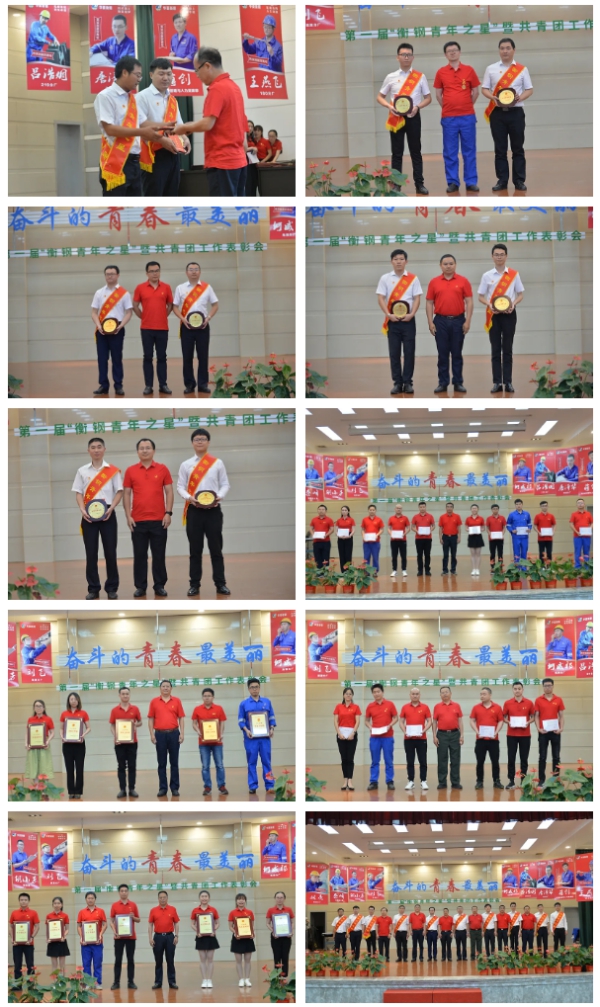 衡鋼領導和第一屆華菱奮斗者之星獲得者分別為“衡鋼青年之星”、“衡鋼青年之星”提名獎、五四紅旗團委、先進團組織、青年文明號、青年抗疫先鋒頒獎。