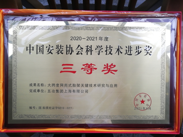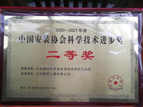 6月24-25日,中國(guó)安裝協(xié)會(huì)第六屆科學(xué)技術(shù)委員會(huì)會(huì)議江蘇省南京市召開(kāi),會(huì)上頒布了2020-2021年度中國(guó)安裝協(xié)會(huì)科學(xué)技術(shù)進(jìn)步獎(jiǎng)名單,由中國(guó)五冶集團(tuán)工程總承包公司推選的《大型燒結(jié)機(jī)快速安裝技術(shù)研究與應(yīng)用》榮獲二等獎(jiǎng),《大跨度網(wǎng)殼式胎架關(guān)鍵技術(shù)研究及應(yīng)用》榮獲三等獎(jiǎng)。
