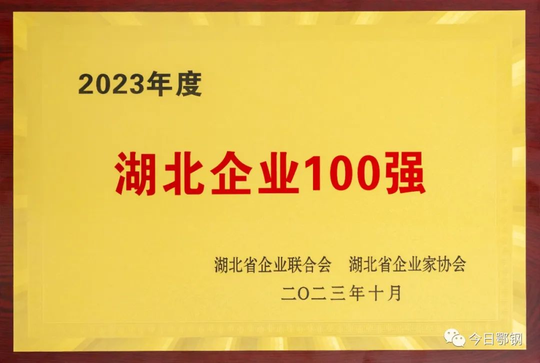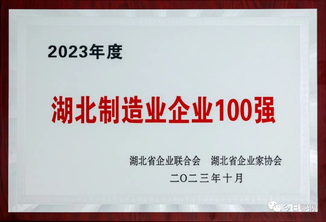 2023湖北企業“三項100強”榜單昨日發布,鄂城鋼鐵上榜“2023湖北企業100強、湖北制造業企業100強”名單。