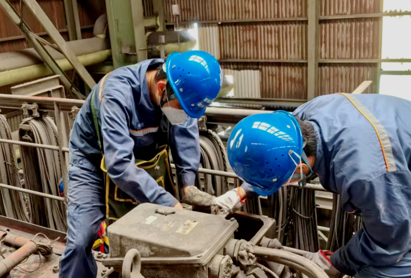 針對59號車主鉤電機轉(zhuǎn)子防塵板松動導致電機振動值超標問題,行車維檢員通過檢測并分析確定振動源后,研究決定創(chuàng)造性地采用復合固定工藝,攻克轉(zhuǎn)子銅板斷裂風險,相較委外維修方案節(jié)約成本1.2萬元。自主維修成本接近于零,同步形成《大功率電機防塵組件自主維修標準》,填補該領域技術空白,減少對外部技術依賴。