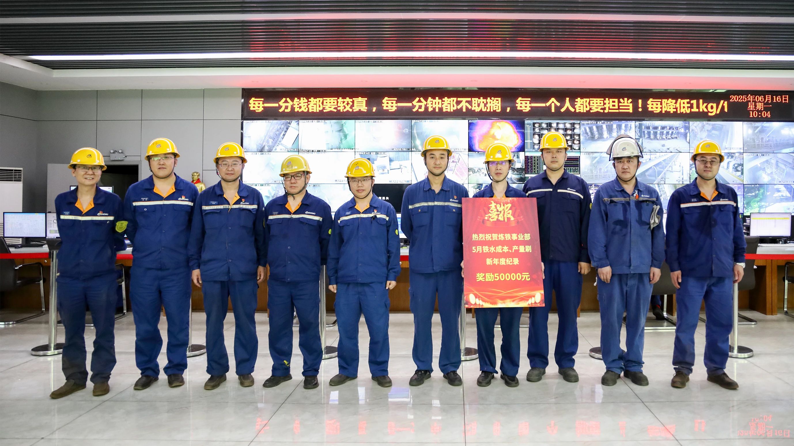 6月16日,重慶鋼鐵公司領(lǐng)導(dǎo)分赴煉鋼、煉鐵、軋鋼生產(chǎn)現(xiàn)場(chǎng),為近期取得突出成績(jī)的奮戰(zhàn)團(tuán)隊(duì)現(xiàn)場(chǎng)送上喜報(bào),表彰他們聚焦極致效率取得的突出成績(jī),鼓勵(lì)他們堅(jiān)持高標(biāo)準(zhǔn)、嚴(yán)要求,向著更高的目標(biāo)沖刺。