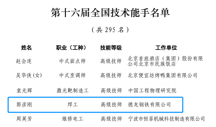 據(jù)悉,此次活動由國家人社部組織承辦,旨在貫徹落實習近平總書記關于技能人才工作系列重要指示和中央人才工作會議精神,評選表彰一批為高質量發(fā)展作出突出貢獻的高技能人才先進典型,在全社會弘揚勞模精神、勞動精神、工匠精神,激勵更多勞動者特別是青年一代走技能成才、技能報國之路,按照黨的二十大描繪的宏偉藍圖,為全面建設社會主義現(xiàn)代化國家提供有力人才保障。此次活動共評選出30名中華技能大獎獲得者、295名全國技術能手。郭彥剛能夠經過層層篩選和激烈角逐,可謂是對德龍鋼鐵及其本人的最大肯定。