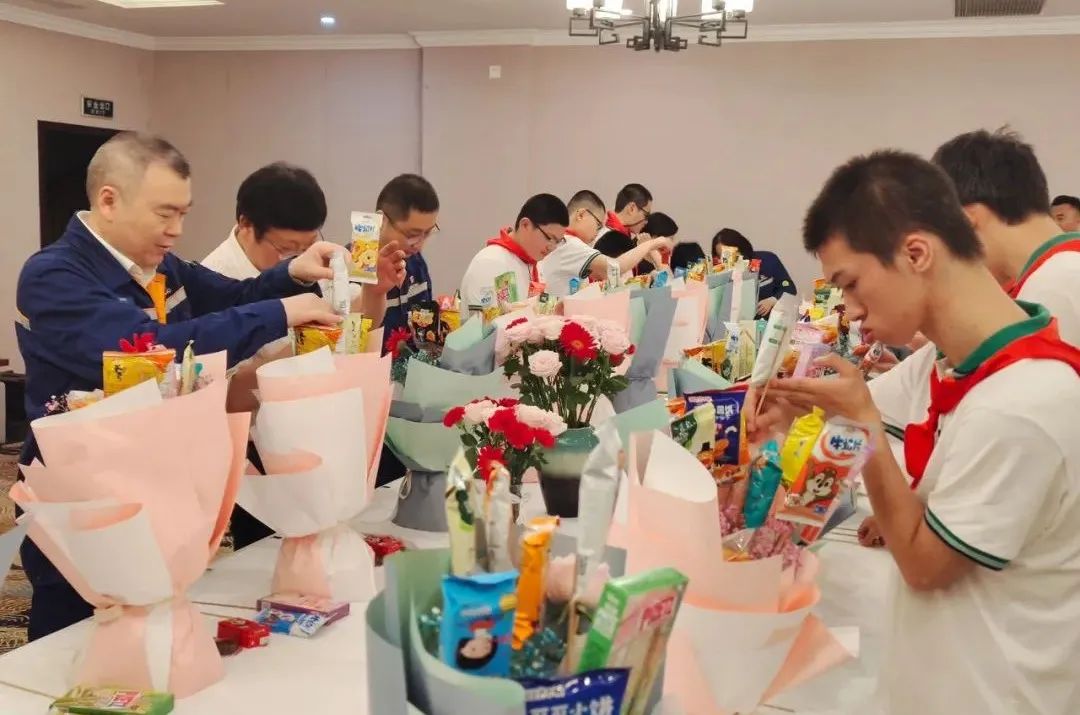孩子們在家長、老師以及志愿者的鼓勵和陪伴下,動起小手用糖果裝飾花束,開啟創(chuàng)意制作的新玩法。萌態(tài)十足的花束,帶給孩子們手工制作的新奇感和成就感,收獲了滿滿的快樂。大人們也在與孩子的互動中,體驗到了久違的童真,現(xiàn)場歡聲笑語不斷。