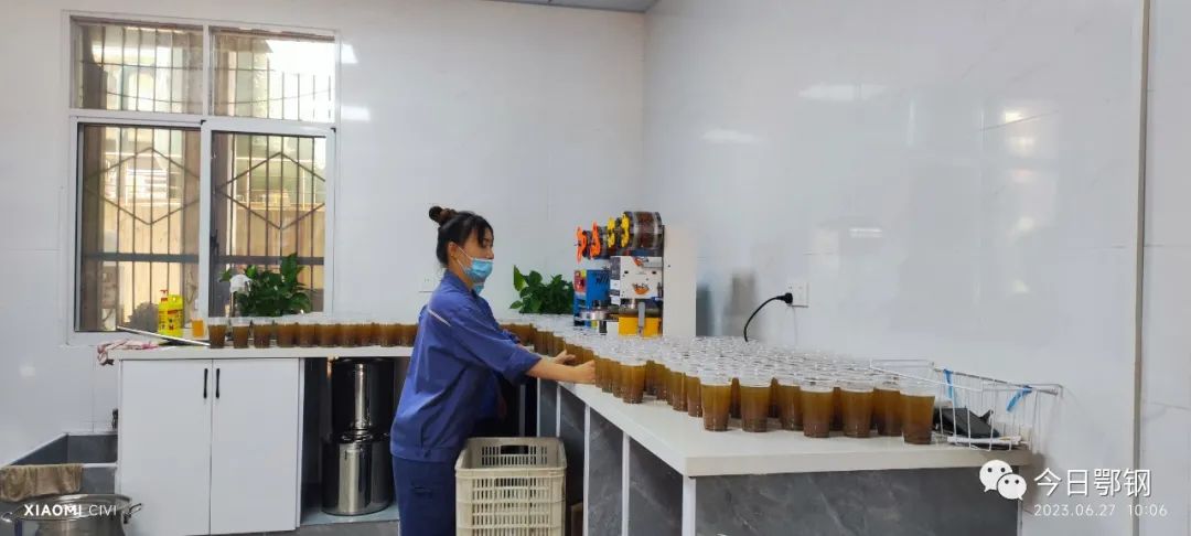 對(duì)焦化原有的防暑降溫室進(jìn)行翻新,為高溫崗位、關(guān)鍵崗位制作酸梅湯和綠豆湯,讓員工在炎炎夏日感受到舒爽“透心涼”。整裝后,場(chǎng)所更加干凈衛(wèi)生,被職工稱為“清涼驛站”。