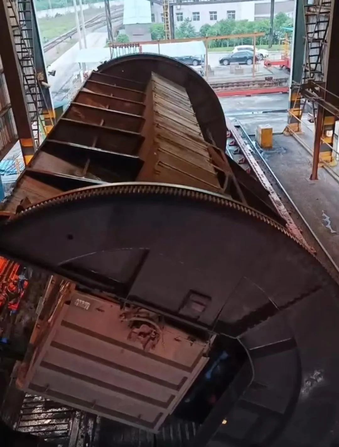 翻車機翻卸大宗原燃料的運輸車輛車廂均為敞口車,在雨季長途運輸后,待卸車廂內積水較多,如果打開車廂門放水會造成物料損失,且物料和水會直接排到鐵路兩邊不符合環保要求。