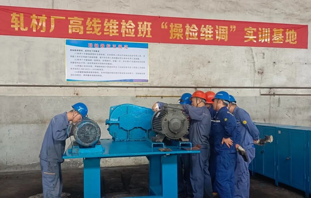 9月份,軋材廠高線產(chǎn)線操檢維調(diào)實訓(xùn)基地建成。該實訓(xùn)基地主要利用淘汰的舊設(shè)備,經(jīng)維檢班成員使用“拆、卸、改、組、裝、調(diào)”六步法,歷經(jīng)一個月時間在原高線機(jī)修間建成。建設(shè)過程沒有大額資金投入,也沒占用太多生產(chǎn)時間,更沒耗費過多人工,可謂“短、平、快”。