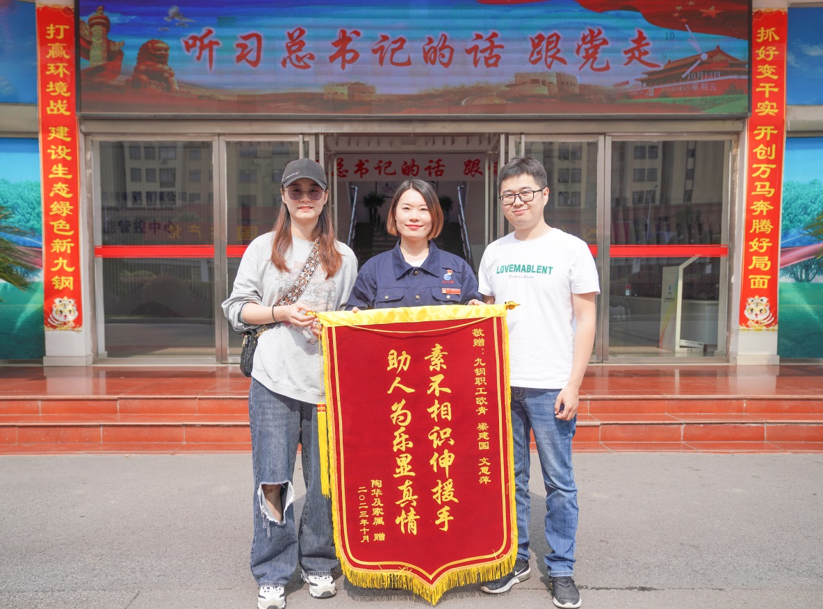 “非常感謝,謝謝你們救了我父親的性命!你們不僅是救了我父親一命,更挽救了我們這個家庭。”10月13日,方大九鋼辦公大樓前,從九江趕過來的陶昭陽兄妹將一面“素不相識伸援手 助人為樂顯真情”的錦旗送到方大九鋼員工歐青手中,感謝該公司員工歐青、梁建國、文意萍的救人善舉。