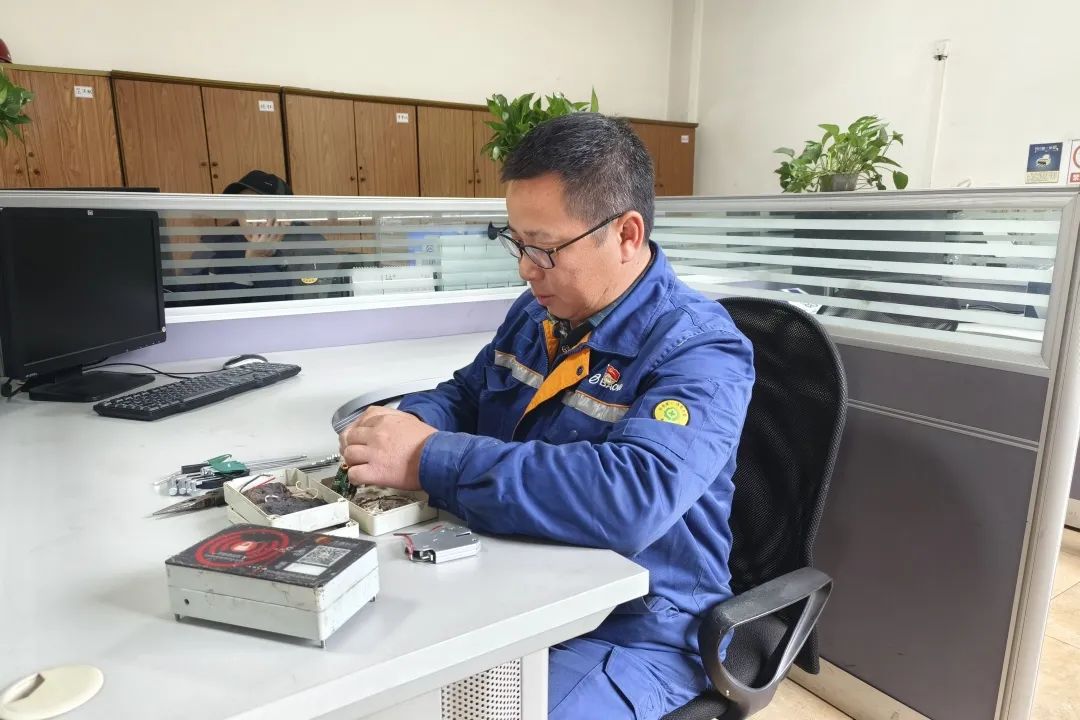 原料檢測作業區點檢員楊林本著修舊利廢,物盡其用的原則,對故障取樣桶電子鎖進行拆解,檢查鎖芯、電路板,研究其結構和故障原因,現場跟蹤使用過程,反復排查故障原因。他通過豐富的設備經驗,結合網上查閱資料,掌握取樣桶電子鎖工作原理,對其進行拆解、和對未損件進行重組、電路板清灰、鎖芯潤滑等,成功修復取樣桶電子鎖近20個,節約備品備件費用2.6萬余元。