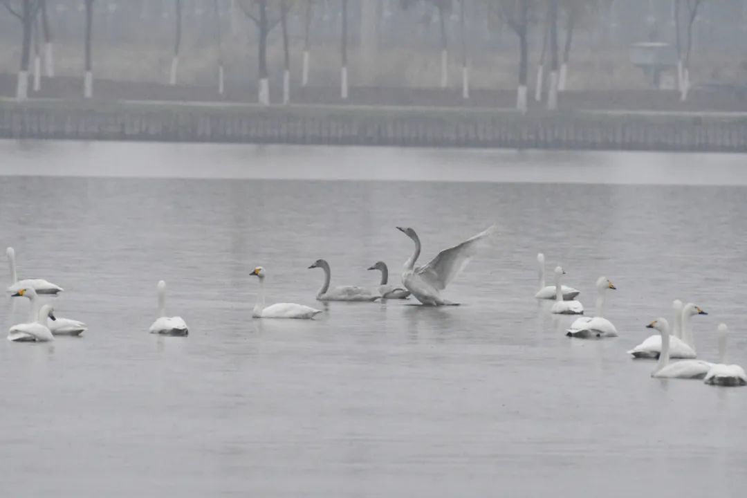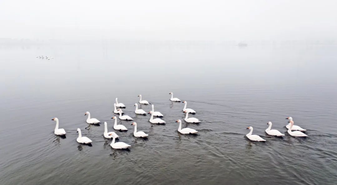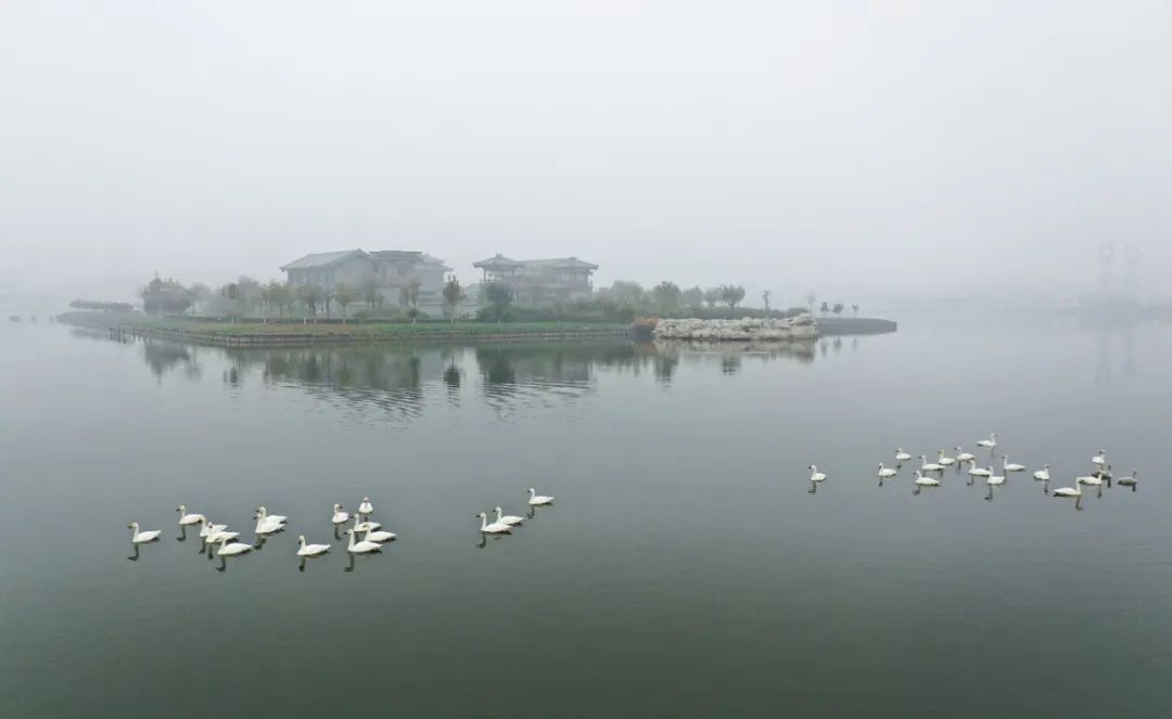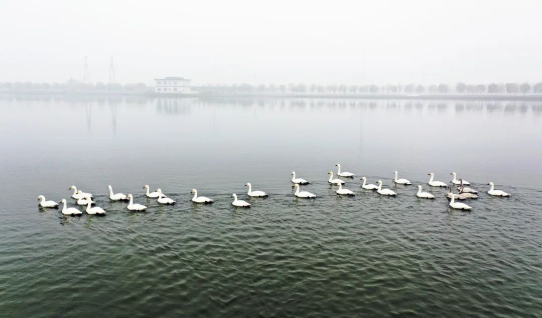 初冬的一場雨水過后,晉南鋼鐵太子湖被一層薄紗般的霧氣籠罩,在這如夢(mèng)似幻的天氣,大批天鵝翩翩飛臨太子湖棲息。與往年不同的是,今年飛臨此地的天鵝數(shù)量多達(dá)上百只,成為企業(yè)綠色低碳發(fā)展的最美“代言人”。