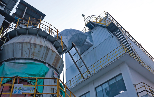 圖為夕陽下的高性能活性摻合料生產裝置。