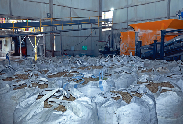圖為該公司一線工人在鋼渣、水渣等固廢料場鏟運生產原料。