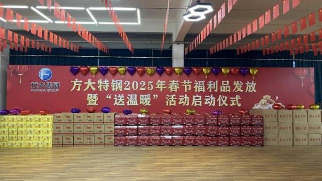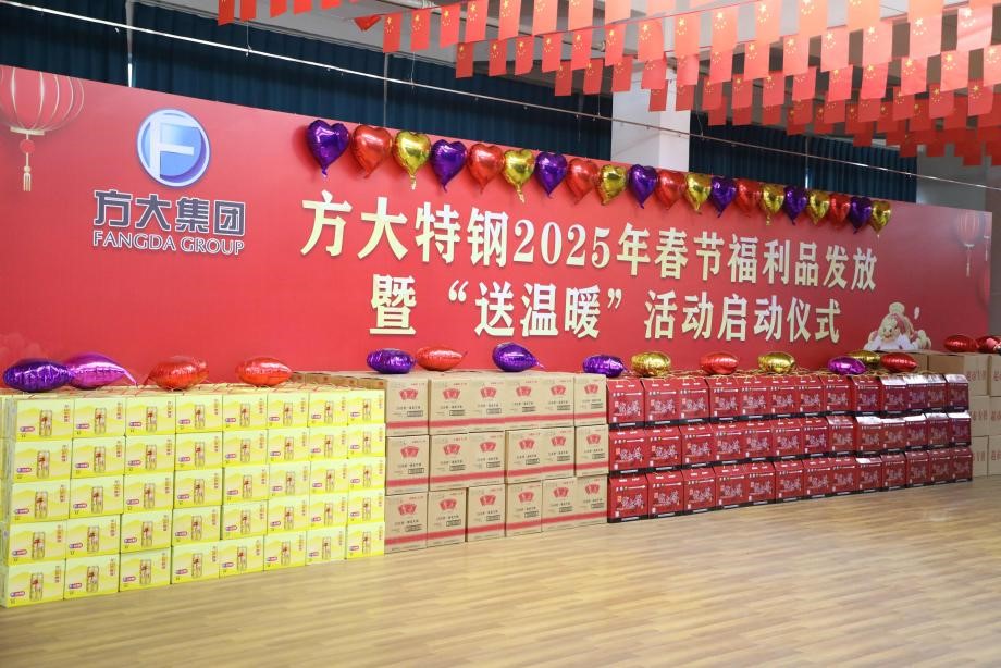 1月20日上午,方大特鋼在職工活動(dòng)中心隆重舉行2025年春節(jié)福利品發(fā)放暨“送溫暖”活動(dòng)啟動(dòng)儀式。該公司此次春節(jié)福利品包含牛肉、羊肉、腐竹、墨魚(yú)和食用油,其中牛肉、羊肉和腐竹均為該公司在甘肅省臨夏州東鄉(xiāng)族自治縣的鄉(xiāng)村振興企業(yè)生產(chǎn),在關(guān)心關(guān)愛(ài)員工、精準(zhǔn)幫扶該公司建檔員工及家庭的同時(shí),積極助力鄉(xiāng)村振興工作發(fā)展。(徐加平)