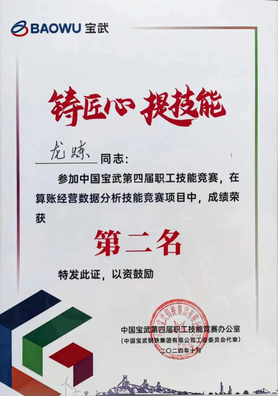 作為CE+系統(tǒng)建設(shè)核心成員,她全程參與從銷售端需求分析到系統(tǒng)邏輯驗(yàn)證,提出40余項(xiàng)優(yōu)化建議,助力系統(tǒng)高效落地。系統(tǒng)上線后,她深挖數(shù)據(jù)價(jià)值,構(gòu)建多維度盈利分析模型:從區(qū)域、客戶、產(chǎn)品精細(xì)化“算賬”,鎖定高效益訂單;通過(guò)現(xiàn)貨余材、新產(chǎn)品效益專項(xiàng)復(fù)盤,揭示隱形損失,推動(dòng)業(yè)務(wù)端降本。憑借扎實(shí)的數(shù)據(jù)分析能力,她在2024年中國(guó)寶武算賬經(jīng)營(yíng)競(jìng)賽中斬獲第二名,同時(shí)摘得中南鋼鐵同項(xiàng)競(jìng)賽桂冠。“數(shù)據(jù)力就是競(jìng)爭(zhēng)力”——她用實(shí)力為這句話寫下生動(dòng)注腳!