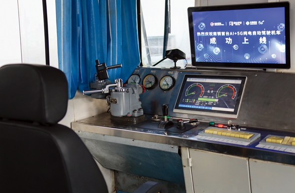 圖為AI+5G純電自動駕駛機車駕駛室內(nèi)觀場景。