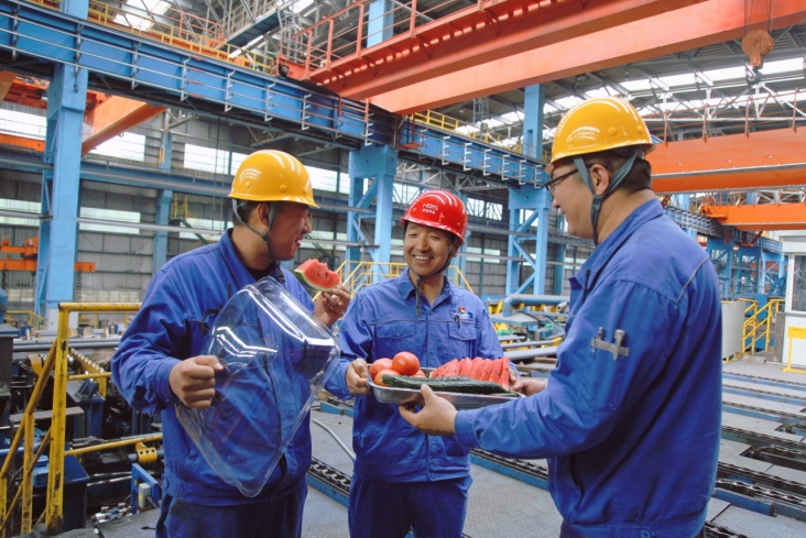 張宣科技金屬材料公司線下組建“清涼速遞”志愿服務隊,每日向高溫崗位職工配送瓜果蔬菜、綠豆湯飲品等多種類清涼套餐。