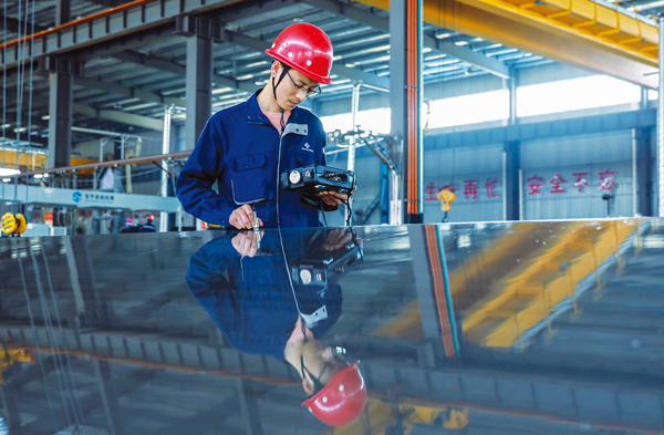 圖為金元素工人正在進行鋼板探傷檢測。