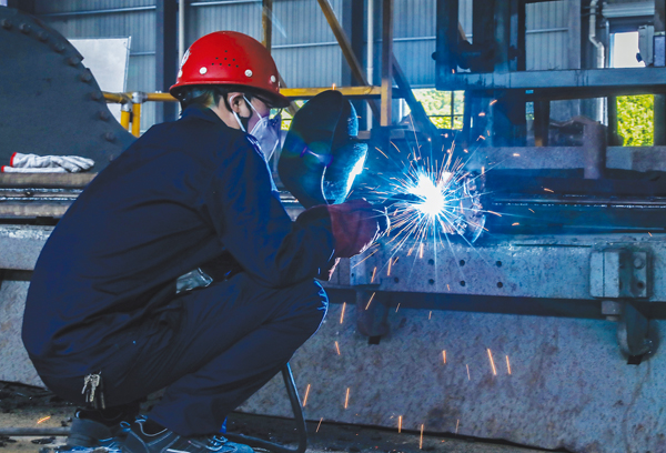 圖為金元素工人正在進行復合板埋弧焊接作業。