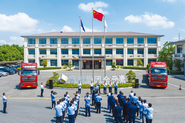 圖為南鋼首批核電安注箱復合板交付發車儀式。