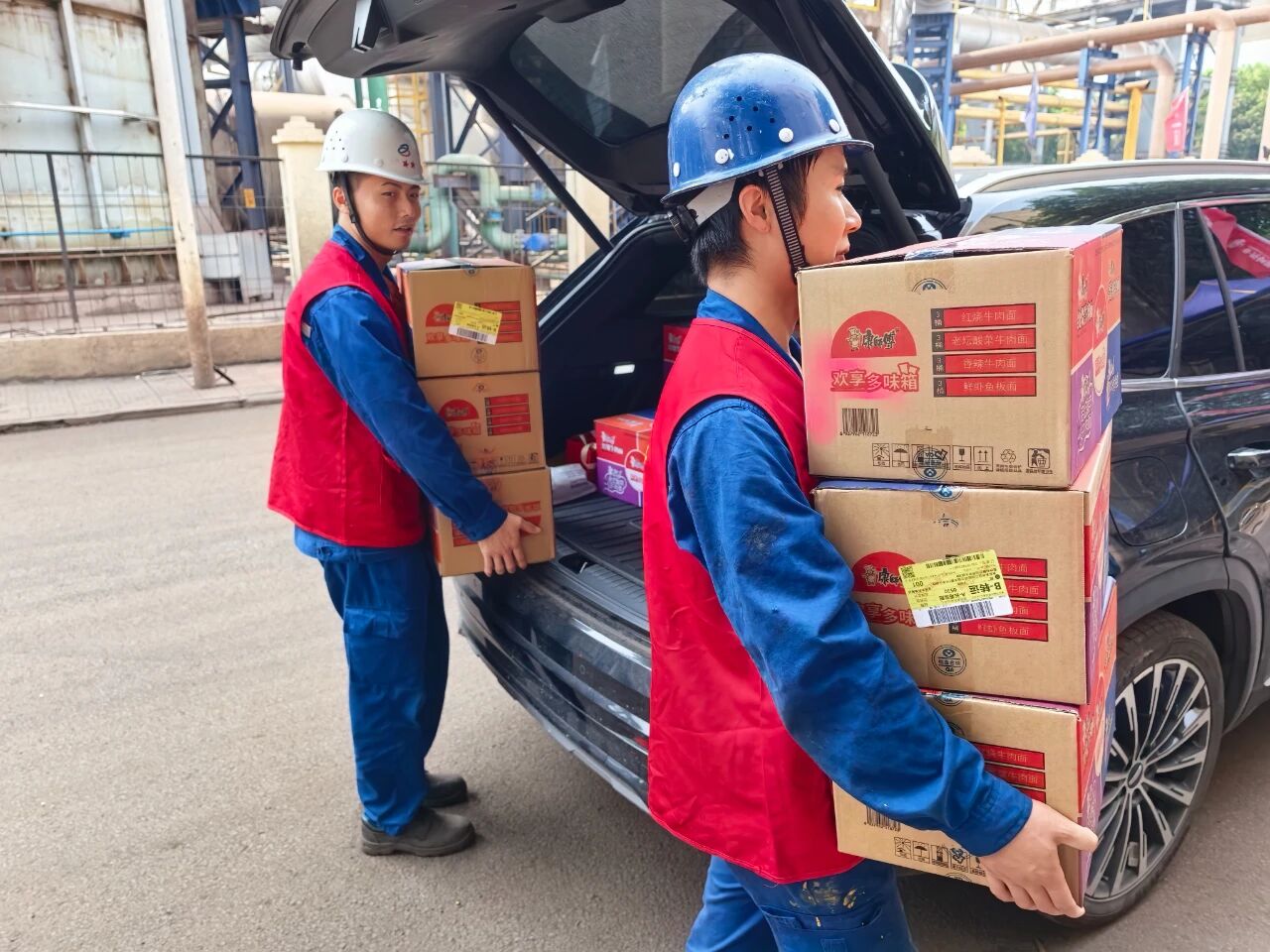 針對持續高溫及繁重的檢修任務,該公司工會心系一線,迅速行動。不僅為檢修人員準備了便捷的方便面食品,還送上了充足的防暑降溫飲料,為堅守崗位的檢修人員補充能量、消暑解乏。
