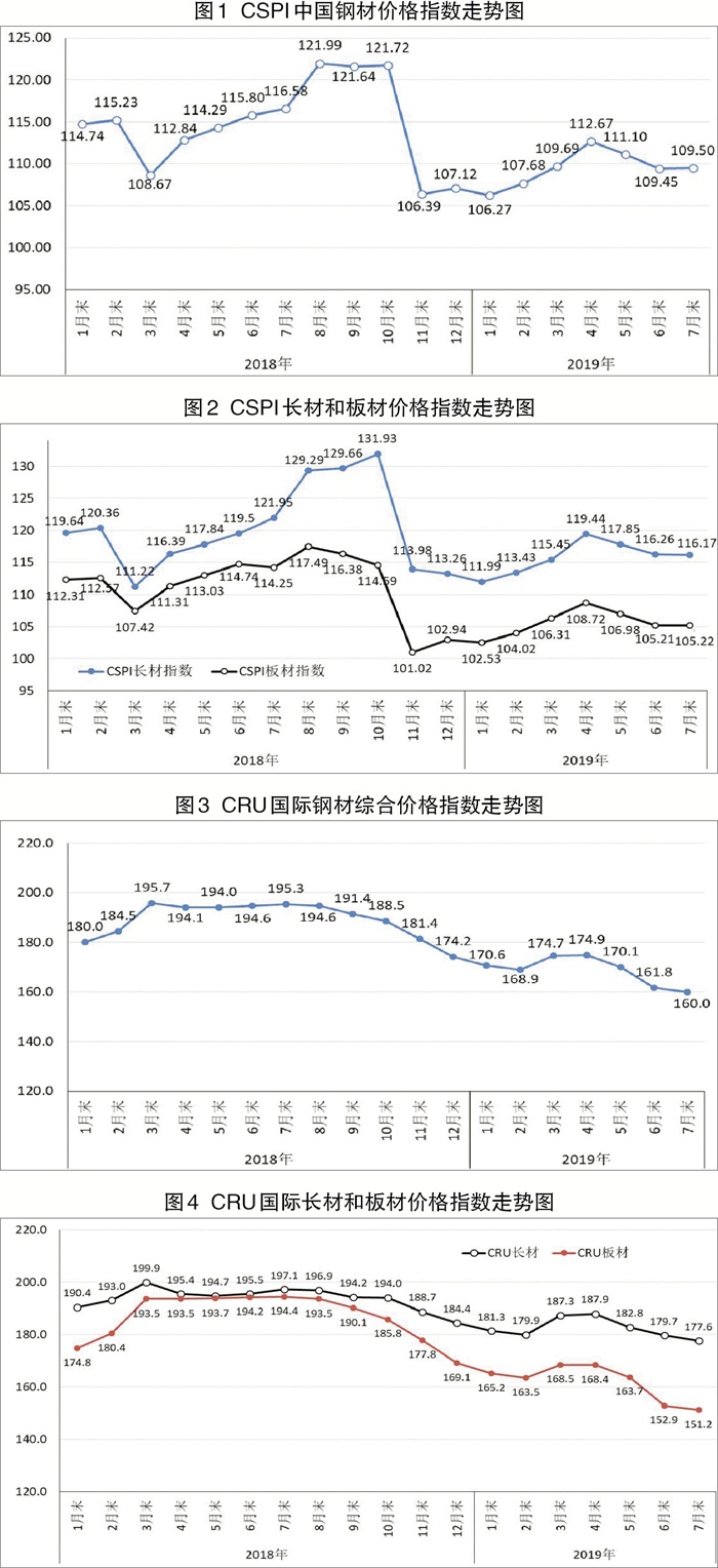 7月末,鋼協(xié)CSPI中國(guó)鋼材價(jià)格指數(shù)為109.50點(diǎn),環(huán)比上升0.05點(diǎn),升幅為0.05%,環(huán)比由降轉(zhuǎn)升;同比下降7.08點(diǎn),降幅為6.07%。(見圖1)