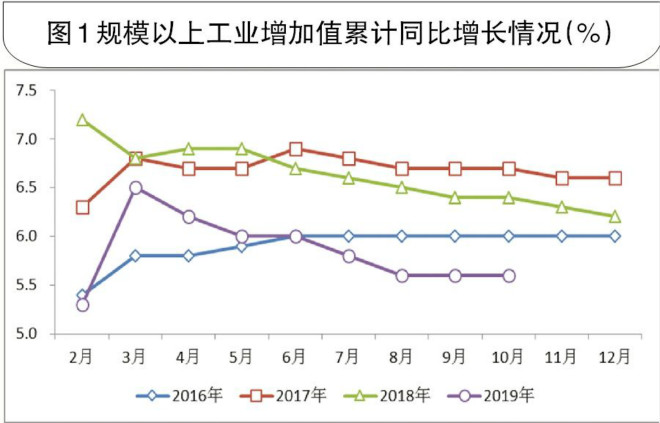 圖1規(guī)模以上工業(yè)增加值累計(jì)同比增長(zhǎng)情況(%)