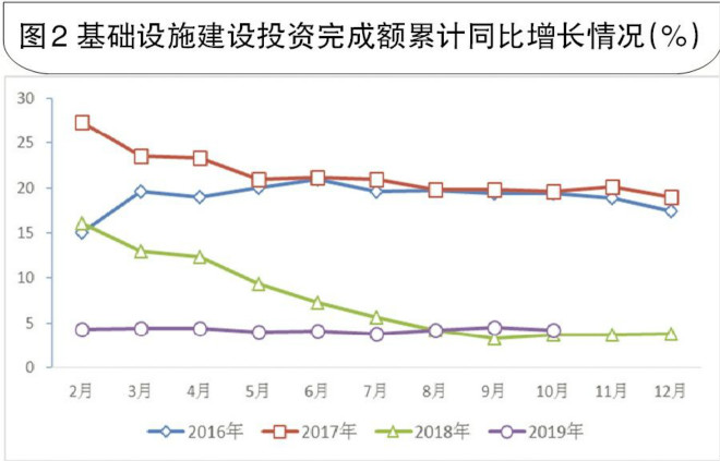 圖2 基礎(chǔ)設(shè)施建設(shè)投資完成額累計(jì)同比增長(zhǎng)情況(%)
