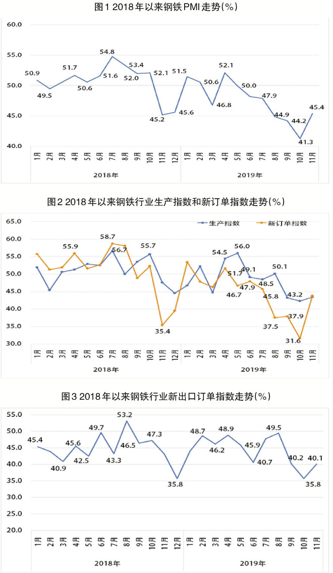 據中物聯鋼鐵物流專業委員會調查發布的數據,11月份,我國鋼鐵行業PMI(采購經理指數)為45.4%,環比上升4.1個百分點,結束了連續6個月環比下降的趨勢。從鋼鐵PMI分項指數來看,11月份,鋼材市場需求回升,產品價格和原材料價格均有不同程度上漲。在需求回升和利潤驅動的雙重影響下,鋼廠生產積極性有所上升,企業采購意愿較強。