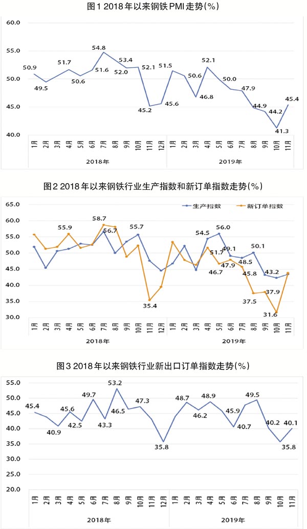 據(jù)中物聯(lián)鋼鐵物流專業(yè)委員會調(diào)查發(fā)布的數(shù)據(jù),11月份,我國鋼鐵行業(yè)PMI(采購經(jīng)理指數(shù))為45.4%,環(huán)比上升4.1個(gè)百分點(diǎn),結(jié)束了連續(xù)6個(gè)月環(huán)比下降的趨勢。從鋼鐵PMI分項(xiàng)指數(shù)來看,11月份,鋼材市場需求回升,產(chǎn)品價(jià)格和原材料價(jià)格均有不同程度上漲。在需求回升和利潤驅(qū)動的雙重影響下,鋼廠生產(chǎn)積極性有所上升,企業(yè)采購意愿較強(qiáng)。
