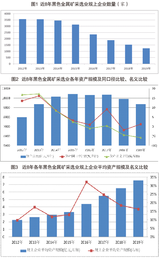 綜合上述分析,黑色金屬礦采選業2016年~2019年資產規模沒有出現大幅下降,同時規上企業的平均資產總額出現較大幅度增長,且由此可判定2015年~2018年黑色金屬礦采選業規上企業數量減少與行業內的企業兼并重組密切相關,同時與部分企業的退出以及部分企業因營業收入下降而不再列入規上企業統計范疇相關聯。