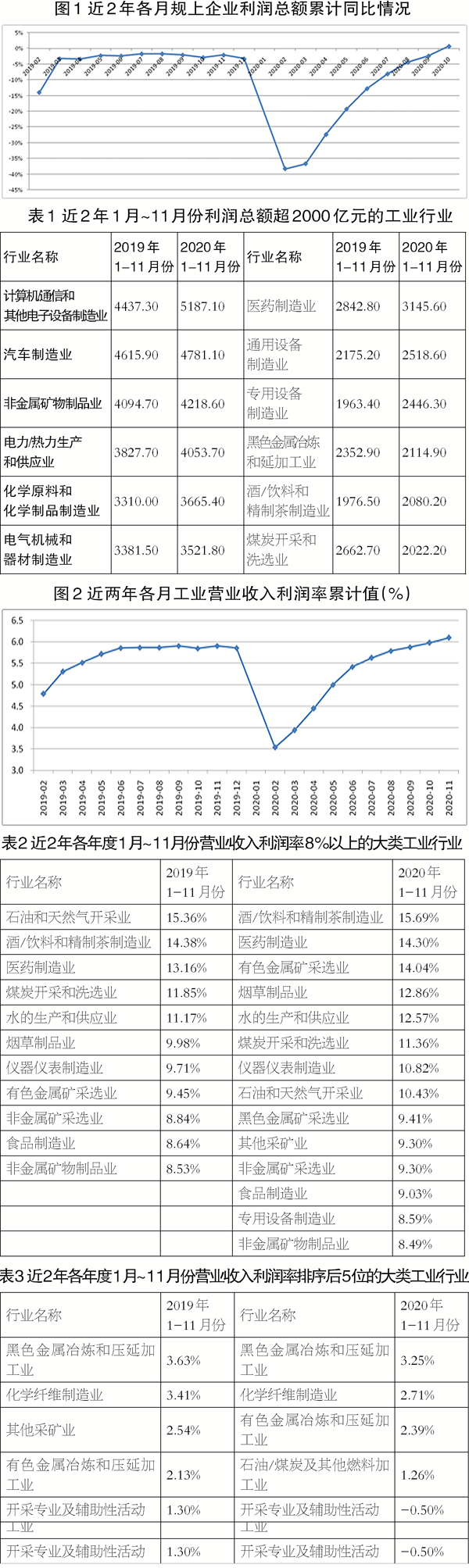 2020年前11個月共有26個工業行業利潤總額同比增加