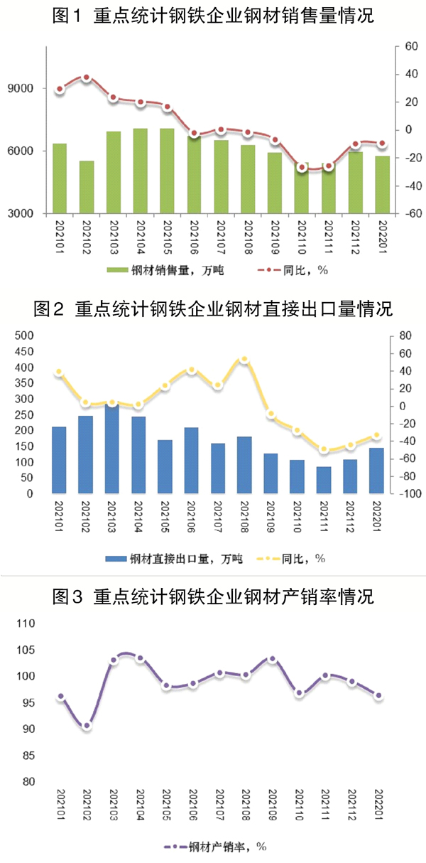 1月份,從產銷率角度看,板帶材生產與銷售銜接情況要好于長材。