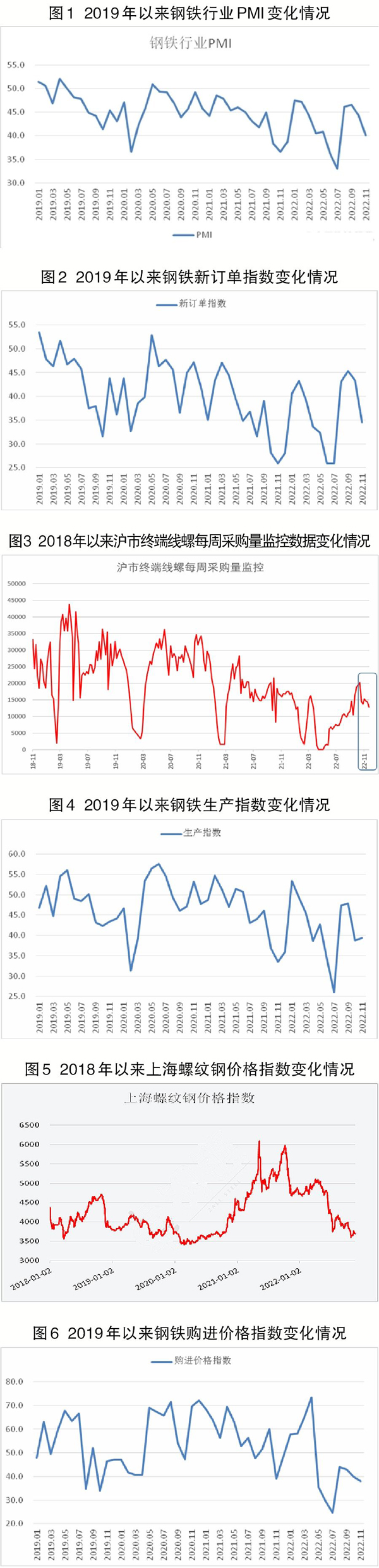 11月份,由于新冠肺炎疫情多點散發對局部地區的工廠作業和工地施工有所影響,加上需求季節性衰減,此外作為主要用鋼方的房地產行業弱勢運行,對鋼材需求的支撐作用持續弱化。1月—10月份,房地產開發投資同比下降8.8%,房屋新開工面積下降37.8%。10月份房地產開發景氣指數為94.70,同樣持續處于低位水平。雖然國內部分城市連續出臺房地產限購松綁政策,但整體房地產需求表現不佳,多數購房者選擇延后甚至停止購房,這使得房地產供需兩端都難有改善。在多種因素疊加下,鋼材需求表現一般,11月份新訂單指數為34.5%,較10月份下降8.9個百分點。鋼材終端市場需求同樣呈現收縮態勢,從監測到的滬市終端線螺采購數據來看,11月份上海終端采購環比下降15.2%,整體表現減弱。