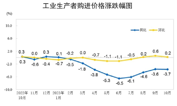 本報訊 10月份,全國工業生產者購進價格同比下降3.7%,環比上漲0.2%。其中,黑色金屬材料類購進價格同比下降2.1%,環比上漲0.2%。