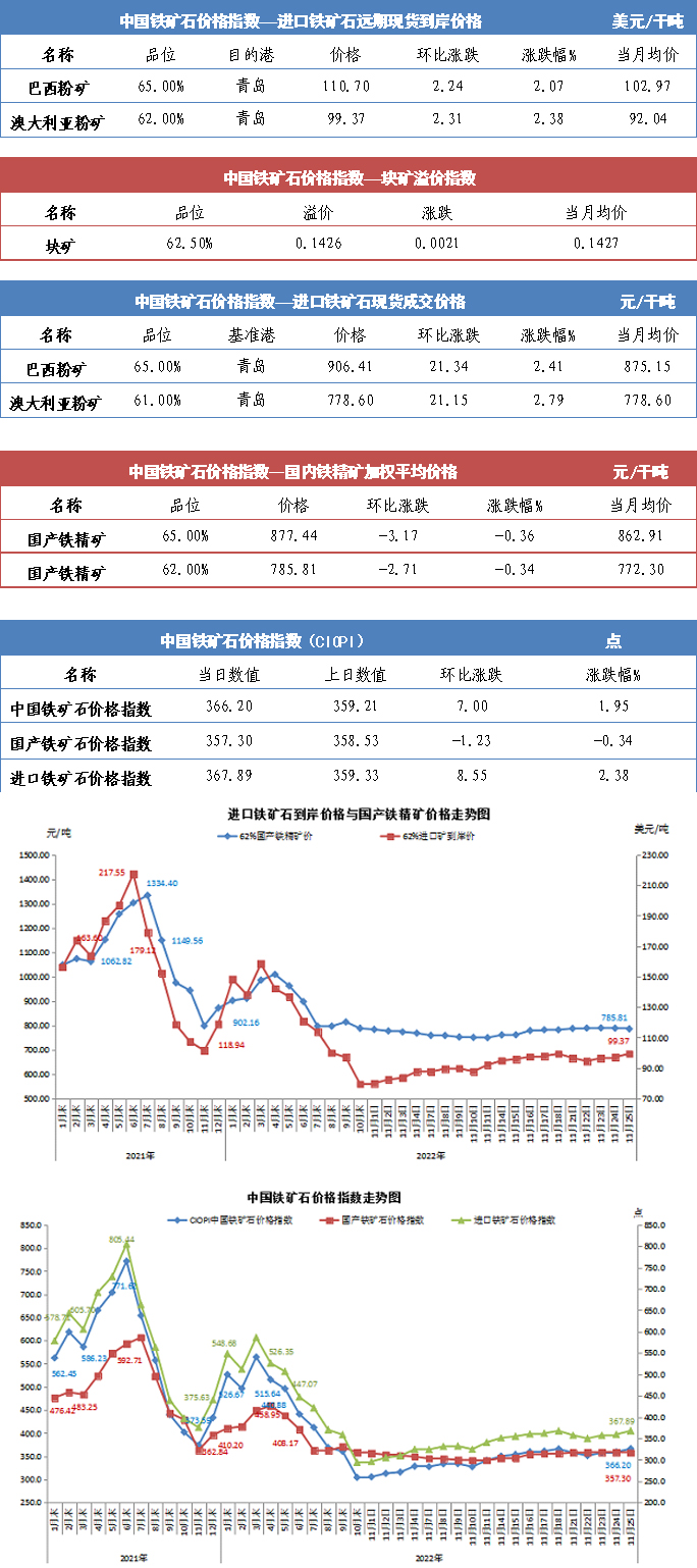 【行業(yè)指數(shù)】11月25日中國鐵礦石價格指數(shù)