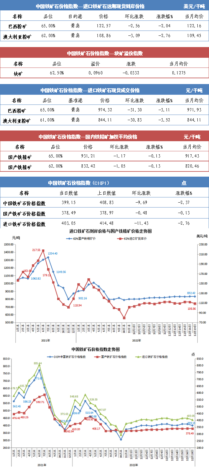 【行業(yè)指數(shù)】12月19日中國(guó)鐵礦石價(jià)格指數(shù)