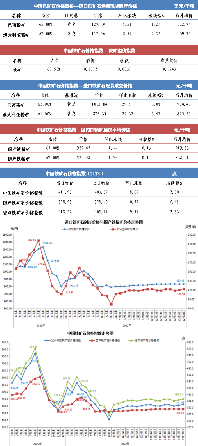 【行業(yè)指數(shù)】12月21日中國鐵礦石價格指數(shù)