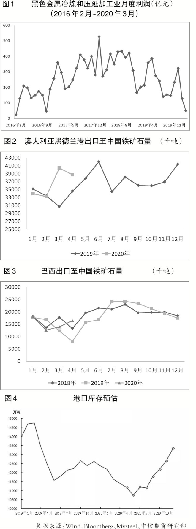 受新冠肺炎疫情影響,下游需求減少,鋼價下降,原料價格相對堅挺,鋼鐵庫存大幅增加,鋼鐵行業第一季度利潤大幅下滑。不過,自3月中下旬以來,隨著國內疫情得到初步控制,物流及下游需求等初現改善跡象。目前,鋼廠庫存水平有所下降,但仍處高位,鋼鐵生產保持穩定。而海外的鐵礦石供給并沒有受到疫情影響,發運情況甚至超過去年同期水平。