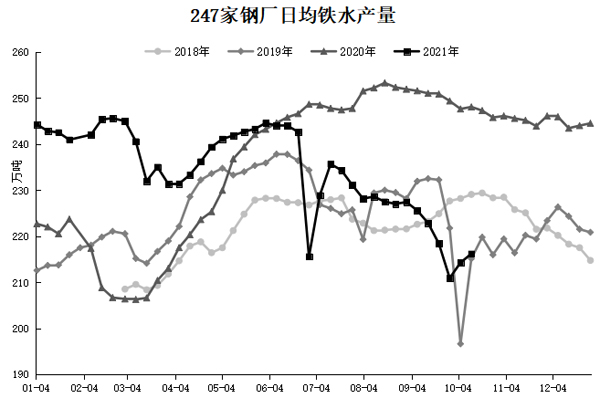 需求方面,鋼鐵行業(yè)仍在執(zhí)行粗鋼產(chǎn)量壓減政策,疊加能耗雙控政策的影響,鋼廠高爐開工率日漸下滑,不斷壓低對原材料的需求。但在多地實施限產(chǎn)、限電的過程中,部分地區(qū)出現(xiàn)了粗暴式的拉閘停電。因此,國務(wù)院常務(wù)會議指出,各地要嚴(yán)格落實屬地管理責(zé)任,做好有序用電管理,糾正“一刀切”停產(chǎn)限產(chǎn)或“運動式”減碳的行為,使得部分地區(qū)限產(chǎn)、限電稍有放松,鋼廠高爐得以復(fù)產(chǎn)。不過,大部分都是不飽和生產(chǎn),且有不少企業(yè)表示,短期雖然能恢復(fù)生產(chǎn),但后期仍將配合地方政策進(jìn)行限產(chǎn)。數(shù)據(jù)顯示,上周247家鋼廠高爐產(chǎn)能利用率為80.66%,環(huán)比回升0.72個百分點,同比下降12.25個百分點;日均鐵水產(chǎn)量回升至216萬噸左右,同比減少32萬噸,目前焦炭需求仍處于偏低水平。