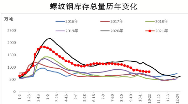 需要注意的是,10月份以來,即使在需求環比下降、供應環比上升的背景下,螺紋鋼市場總庫存仍維持下降態勢。最新數據顯示,螺紋鋼鋼廠庫存為285.95萬噸,社會庫存為502.28萬噸,庫存總量為788.23萬噸,同比下降19.69%。從絕對數量來看,當前螺紋鋼庫存遠低于去年同期,若考慮到產量基數的擴大,則低庫存格局更為明顯;從變化來看,螺紋鋼市場自8月份開始進入到去庫存周期,庫存下降態勢在10月份也未曾改變。整體來看,目前螺紋鋼市場處于低庫存局面。