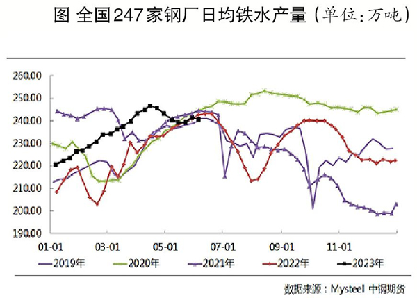 從目前房地產、基建等鋼鐵需求側環比數據來看,淡季終端需求邊際好轉概率較低,短期鐵礦石價格向上驅動力偏弱。中期來看,粗鋼產量同比大幅增加,按平控基準估算,后期鐵礦石需求同比將出現顯著下降。若考慮廢鋼供應量回升對生鐵產量的替代作用,則鐵礦石需求下滑將更為顯著,利空遠月需求。若該政策擴大至全國范圍,則鐵礦石需求環比降幅同樣顯著。筆者預估,5月—12月份日均鐵水產量或下降至226.7萬噸(鋼聯口徑)。截至6月1日,日均鐵水產量為240.81萬噸,預計后市下降幅度為14.11萬噸。