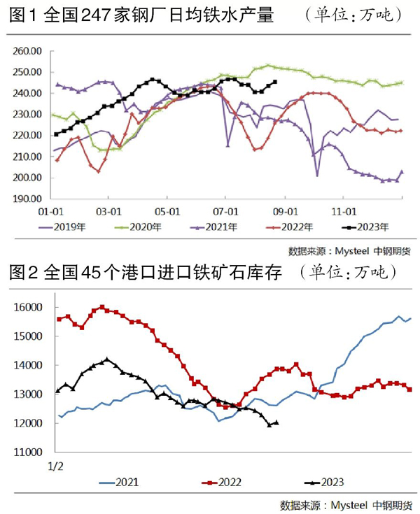 供應方面,主流礦山鐵礦石發運總量回升至中位偏高水平,非主流礦的鐵礦石發運量保持高位,國產礦供應量保持去年同期高位,到港量在創出歷史新高之后出現回落,短期供應端支撐作用減弱。中期來看,后期屬于巴西淡水河谷季節性高發期,疊加澳大利亞必和必拓和FMG礦山財年目標同比均有所提高,第三、四季度預計四大礦山鐵礦石發運量較第一、二季度增加3600萬噸,其中淡水河谷增量約為1400萬噸;發往中國的鐵礦石量較第一、二季度增加2700萬噸,其中淡水河谷增量為900萬噸,澳大利亞力拓、必和必拓和FMG礦山增量分別為400萬噸、600萬噸、800萬噸。