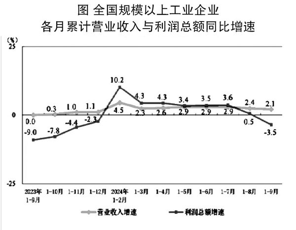 國內方面,據國家統計局數據,1月—9月份,全國規模以上工業企業實現利潤總額同比下降3.5%。其中,制造業實現利潤總額同比下降3.8%:汽車制造業同比下降1.2%,專用設備制造業同比下降5.5%,電氣機械和器材制造業同比下降7.2%,黑色金屬冶煉和壓延加工業利潤總額為-341.0億元(由盈轉虧),同比減少2.56倍。規模以上工業企業營業收入利潤率同比下降0.31個百分點。9月末,規模以上工業企業應收賬款同比增長7.6%,產成品存貨同比增長4.6%。受去年同期高基數等因素影響,9月份,規模以上工業企業利潤同比下降27.1%。