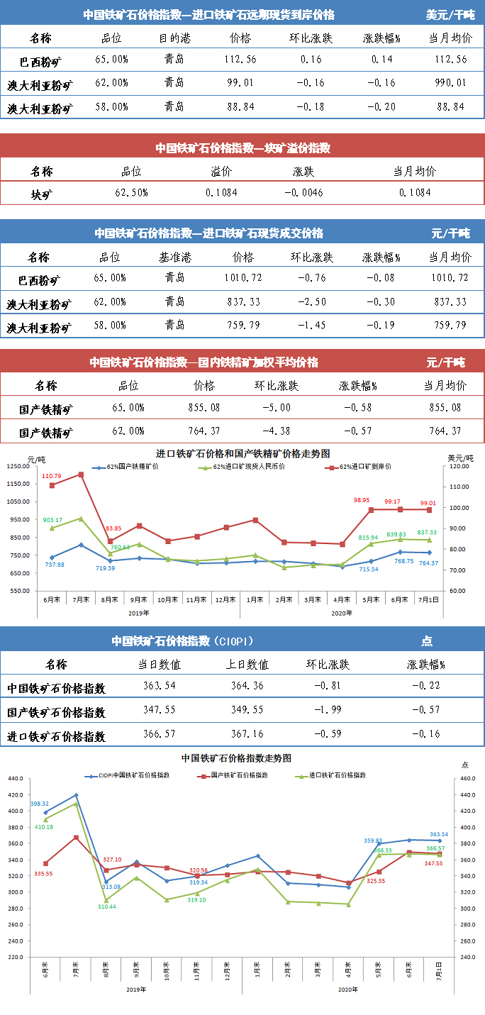 【行業指數】7月1日中國鐵礦石價格指數