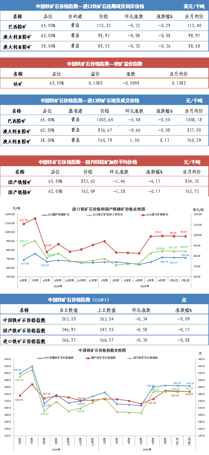 【行業(yè)指數(shù)】7月2日中國(guó)鐵礦石價(jià)格指數(shù)