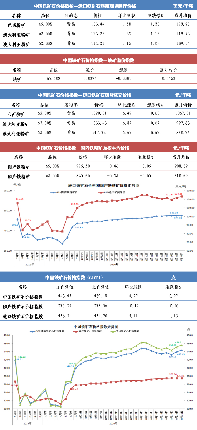 【行業指數】8月31日中國鐵礦石價格指數