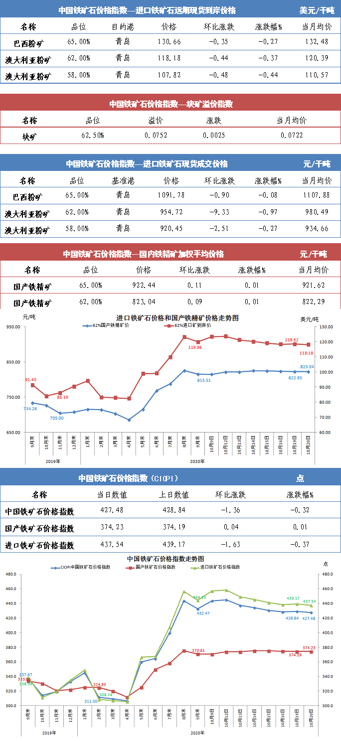 【行業指數】10月20日中國鐵礦石價格指數