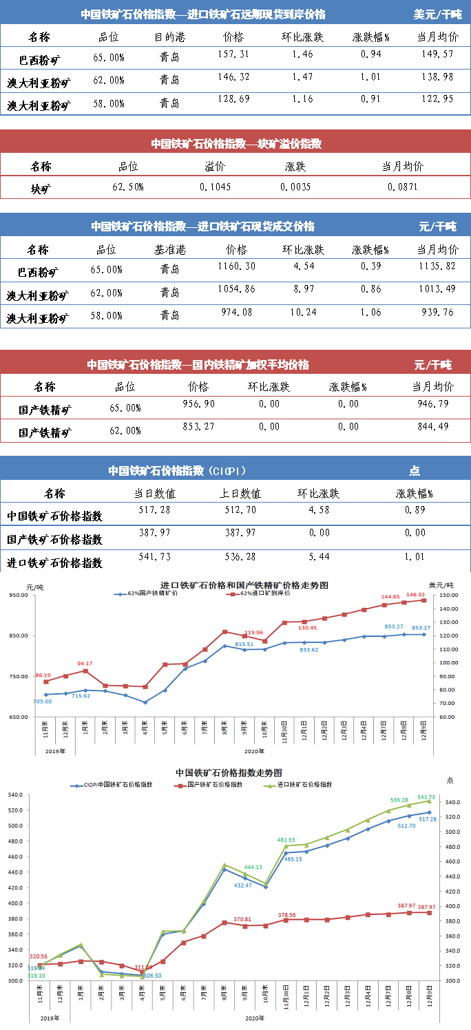 【行業(yè)指數(shù)】12月9日中國鐵礦石價(jià)格指數(shù)